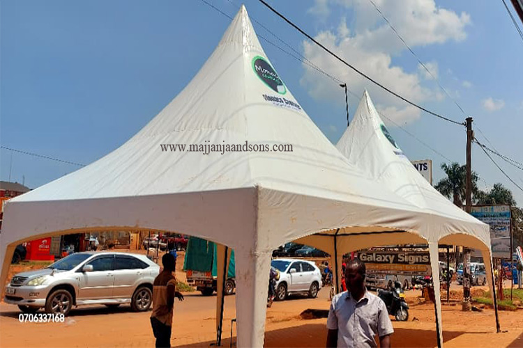 Pagoda tents are distinguished by their elegant peaked design, offering a sophisticated touch to outdoor events in Uganda. They are commonly used for weddings, garden parties, and corporate functions, where both style and shelter are essential. Their unique shape makes them visually striking while maintaining practical benefits.